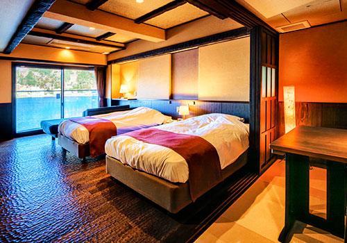 セミコンフォート![]() ![]() | 【広さ】42㎡ 【定員】3名 | ♥和室3畳 ♥ツインベッド ♥露天風呂 |